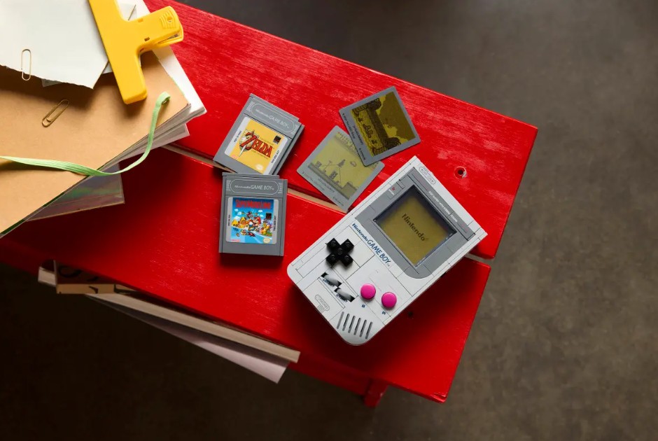 - Personnalisez votre exposition – Comprend des cassettes de jeu Game Boy™ interchangeables en briques The Legend of Zelda™: Link’s Awakening ou Super Mario Land™ et des écrans lenticulaires, ainsi qu’un écran de démarrage Nintendo®