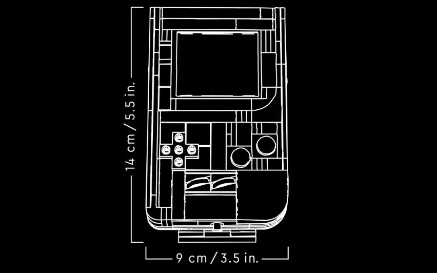 - Détails authentiques – Recréez le bouton de commande +, les boutons A et B, les boutons SELECT et START, le bouton de réglage du contraste et du volume, ainsi que l’emplacement d’introduction des cassettes, et exposez votre Game Boy™ sur le socle