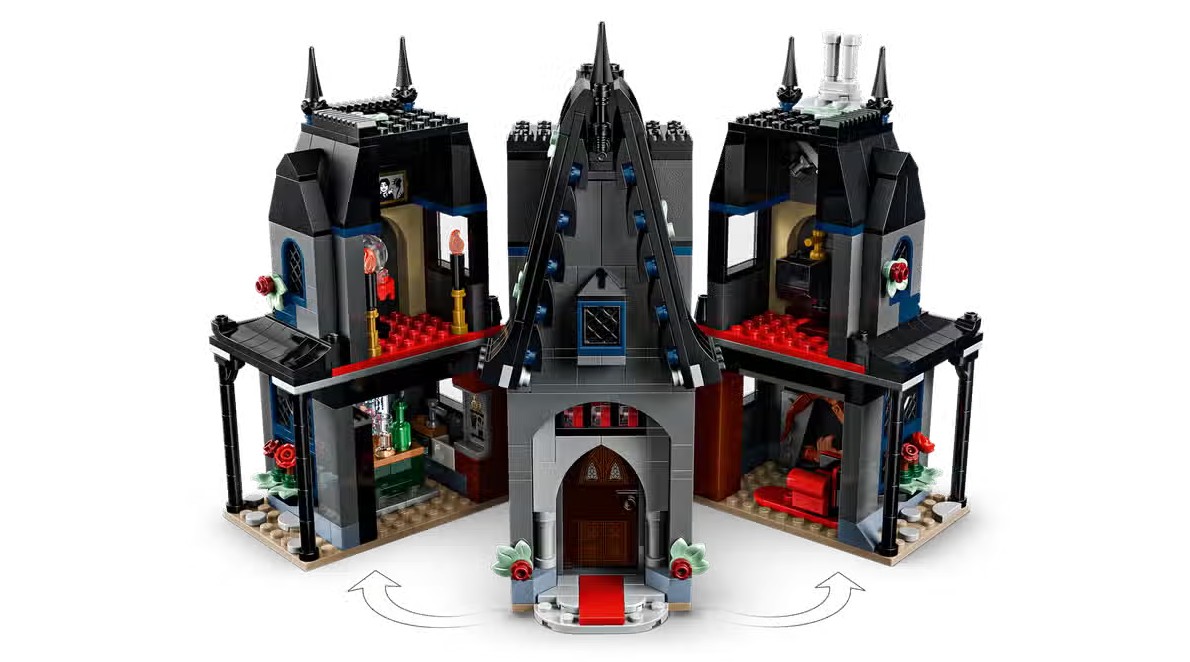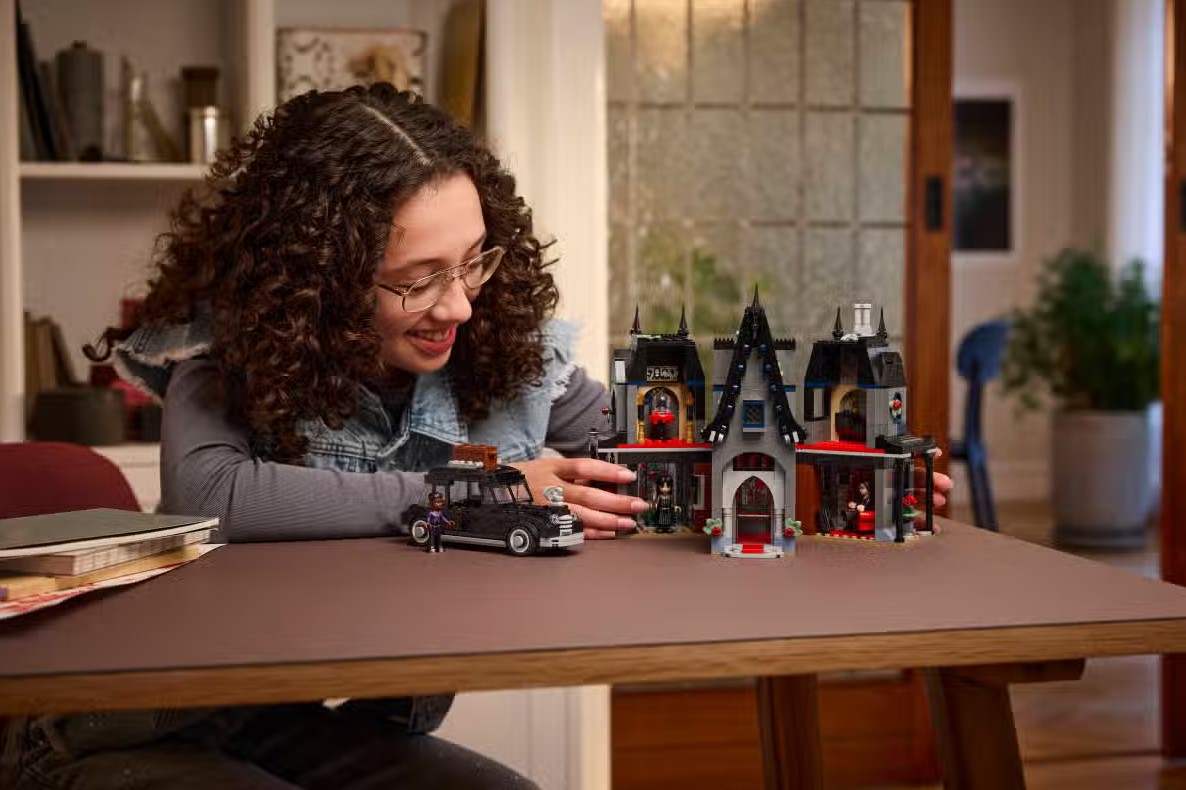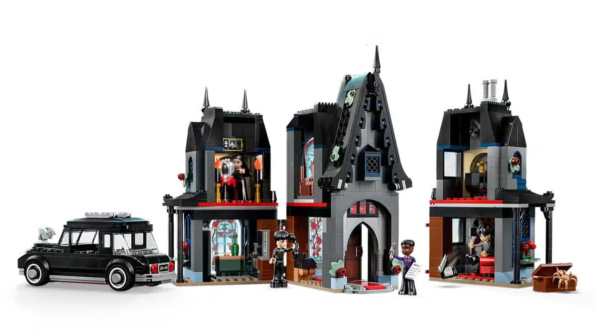 - Jouet LEGO® Mercredi pour enfants – L’ensemble comprend une maison de 6 pièces avec des côtés qui s’ouvrent, une cuisine, une salle de bains spacieuse et un salon avec une cheminée, ainsi qu’une voiture pouvant accueillir 4 figurines