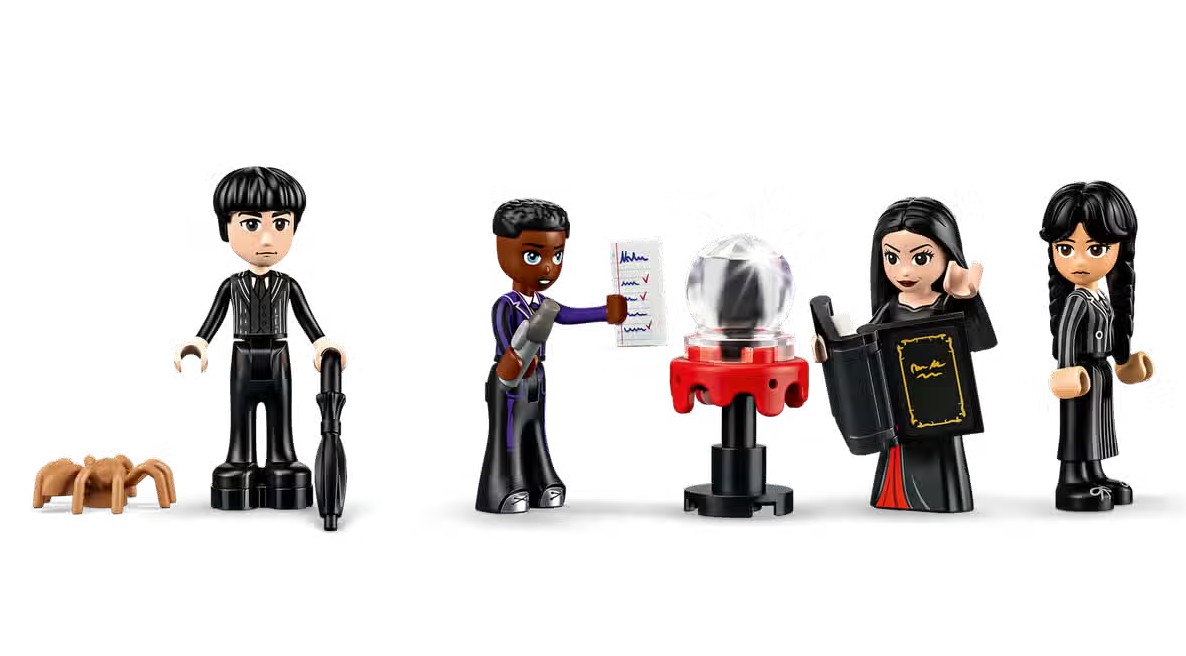 - 4 figurines LEGO® Mercredi – Cet ensemble comprend les figurines de Mercredi Addams, Morticia Addams, Bianca Barclay et Lurch, ainsi que de nombreux accessoires pour créer des histoires