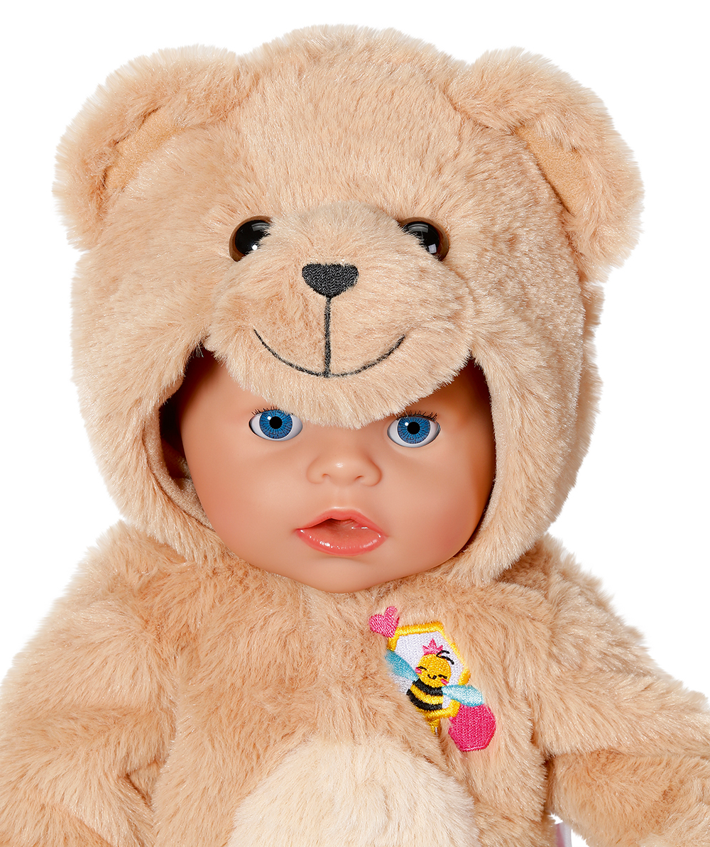 ZapfOh, est-ce l’ourson BABY born? Non, c’est BABY born ! Mais dans sa combinaison ourson, elle ressemble à s’y méprendre à son meilleur ami. Avec sa capuche à oreilles d’ours et son tissu tout doux, elle peut courir dans la forêt avec son ourson et explorer son univers.