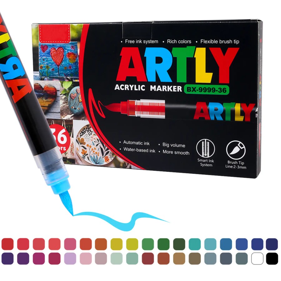 Feutres à pointe pinceau acrylique SASPOO, 36 couleurs, étanches, pour la peinture acrylique sur verre, pierre, bois, plastique et papier.Caractéristique: