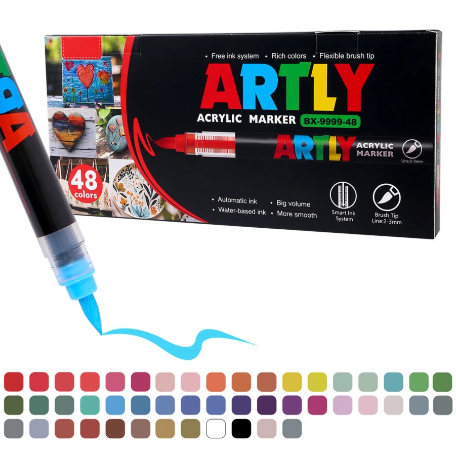 Feutres à pointe pinceau acrylique SASPOO, 48 couleurs, étanches, pour la peinture acrylique sur verre, pierre, bois, plastique et papier.Caractéristique: