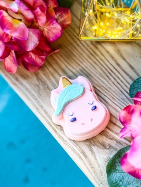 Une fragrance de jujubes aux fruits et contient une figurine de l'animal magique le plus aimé en ce moment. Que vous soyez fan ou vous voulez faire plaisir à un Fan c'est assurément gagnant pour tous les coeurs de fée.Mettez la bombe dans l'eau de votre bain et vivez une expérience pétillante de couleur et de parfum.