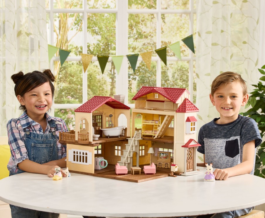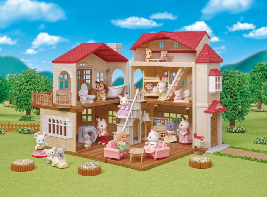 Ce coffret contient la Maison de Campagne au Toit Rouge, des meubles aux couleurs d'origine, ainsi que la Lapine Chocolat, le Bébé Fennec (qui rampe) et le Bébé Koala (assis), tous vêtus de tenues spéciales.Le grenier est équipé d'une échelle coulissante ! C'est une grande maison qui s'ouvre pour jouer et qui possède des lampes. Vous pouvez modifier l'agencement de la maison en retirant les pièces et le toit. Avec le grenier (une salle de jeux secrète pour les bébés !), la maison compte trois étages.