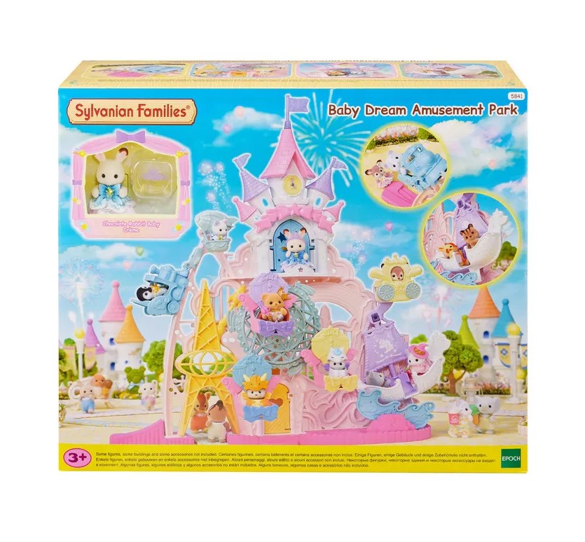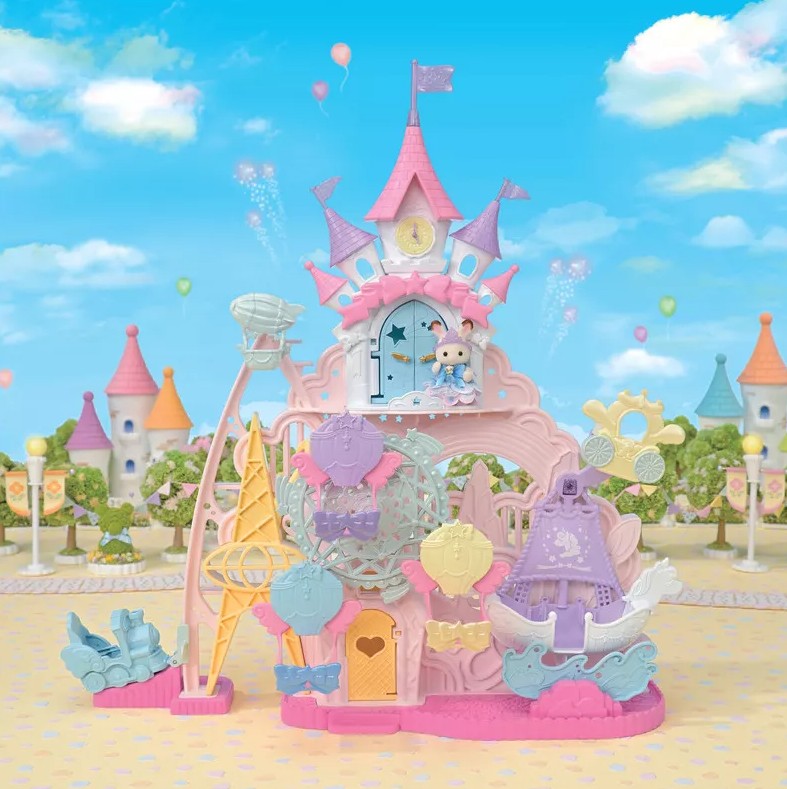 L'ensemble comprend une figurine de bébé jumeau articulée, Crème, le bébé lapin chocolat. Cinq attractions principales attendent les bébés : la grande roue tournante avec ses trois nacelles, le bateau pirate à bascule, la fusée, le petit train volant et le carrosse. Il peut accueillir jusqu'à 30 figurines de bébés Calico Critters.