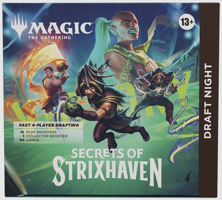 It's a draft party in a box! Draft Night has everything you need to host a Pick-Two Draft with just four players. Pick-Two encourages fast, dynamic drafting that's great for kitchen-table play or adding a dash of variety to game night. Bring Secrets of Strixhaven to the table for an unforgettable game night!More about Secrets of Strixhaven