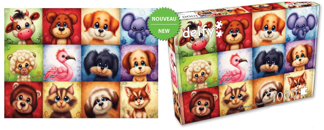 DELFY CASSE-TÊTE 1000 PIÈCES - 12 PORTRAITS D'ANIMAUX MIGNONS (CUTENESS IN DOZEN) #DE-26003 (0226) est catégorisé dans CASSE-TÊTES / Casse-tête adultes en vente chez Galerie du Jouet, un magasin-boutique et un site web spécialisé.