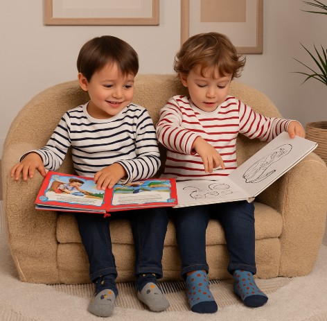 Le coussin d’assise se déplie facilement pour se transformer en matelas d’appoint, créant un espace idéal pour se reposer ou jouer. En quelques secondes, le canapé devient un petit lit moelleux — parfait pour les après-midis détente.