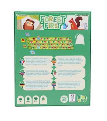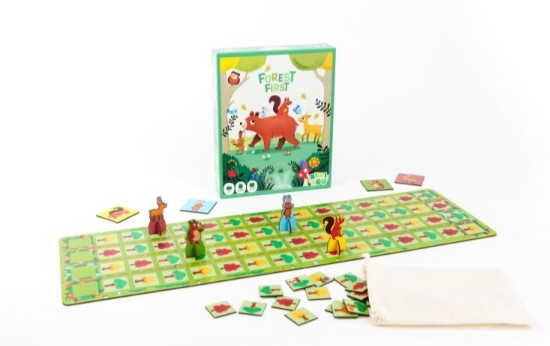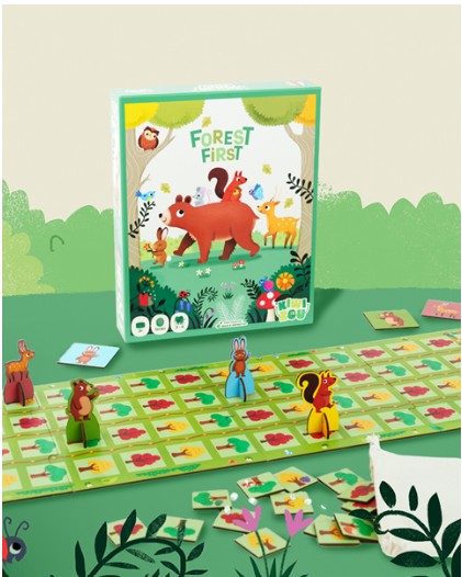 Dans Forest First les joueurs incarnent des animaux de la forêt et font la course : le premier qui atteint le bout de sa ligne remporte la partie. Pour se déplacer pas besoin de manipuler un dé ou de compter des cases, les déplacements se font grâce à un système de couleur : la tuile tirée indique sur quel arbre avancer.