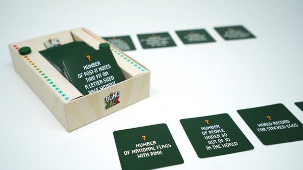 Suivez votre instinct pour mener votre équipe jusqu’à 21 points, mais pas plus !Blind Jack est le jeu de questions qui va animer vos soirées ! À tour de rôle, chaque équipe lit la carte en haut de la pile et estime une réponse entre 0 et 10. Veillez à vous arrêter à temps car les valeurs des vraies réponses s’additionnent… et – comme au Blackjack – si vous dépassez 21, vous êtes cuits !