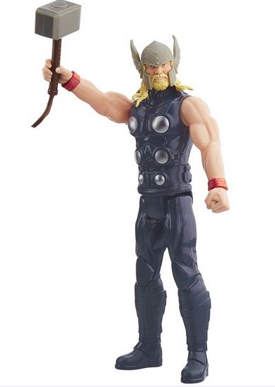 Le puissant Thor utilise sa force pour protéger Asgard et les royaumes environnants. On peut imaginer foncer dans l'aventure grâce aux figurines, véhicules et articles de jeu de rôle inspirés de l'univers Marvel. Grâce à cette gamme de jouets inspirée des classiques, les enfants peuvent imaginer Hulk, Iron Man, Captain America et le reste de l'équipe qui affrontent Thanos, la plus grande menace que l'univers ait jamais connue. Les produits sont vendus séparément. Dans la limite des stocks. Grâce à cette figurine Thor Titan Hero Series, on peut imaginer l'héroïque gardien d'Asgard qui combat pour vaincre le mal dans tout l'univers ! Lorsque les enfants connectent le lance-projectiles Titan Hero Blast Gear (Non inclus. Vendu séparément avec les figurines Titan Hero Blast Gear. Dans la limite des stocks) au port dorsal de la figurine, ils peuvent lancer des projectiles ! Accessoires et lanceur Titan Hero Blast Gear vendus avec les figurines Titan Hero Blast Gear. Vendues séparément, dans la limite des stocks. Copyright 2019 MARVEL. Hasbro et tous les termes associés sont des marques de commerce de Hasbro.FIGURINE THOR DE 30 CM : On peut imaginer le puissant fils d'Odin qui fonce au combat grâce à cette figurine Thor de 30 cm, inspirée du look classique du personnage de l'univers Marvel