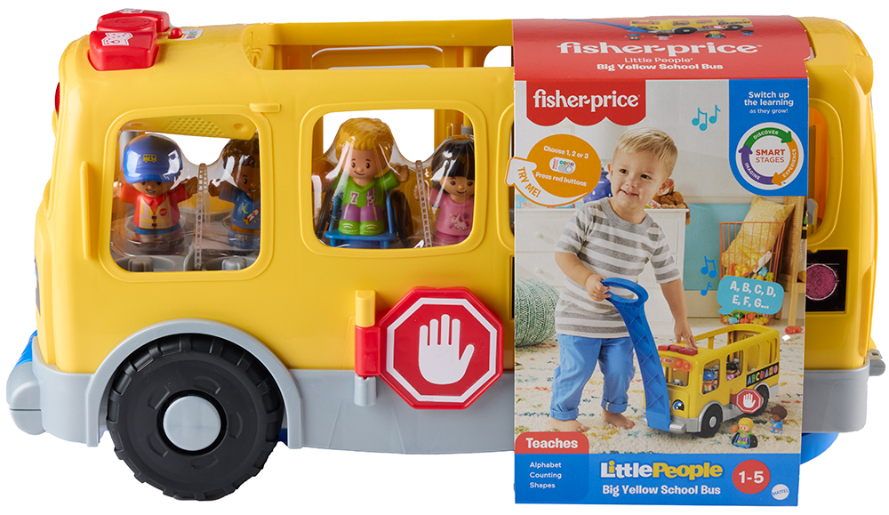 - L'emblématique autobus scolaire Little People est surdimensionné avec 1 poignée à tirer qui se range en dessous