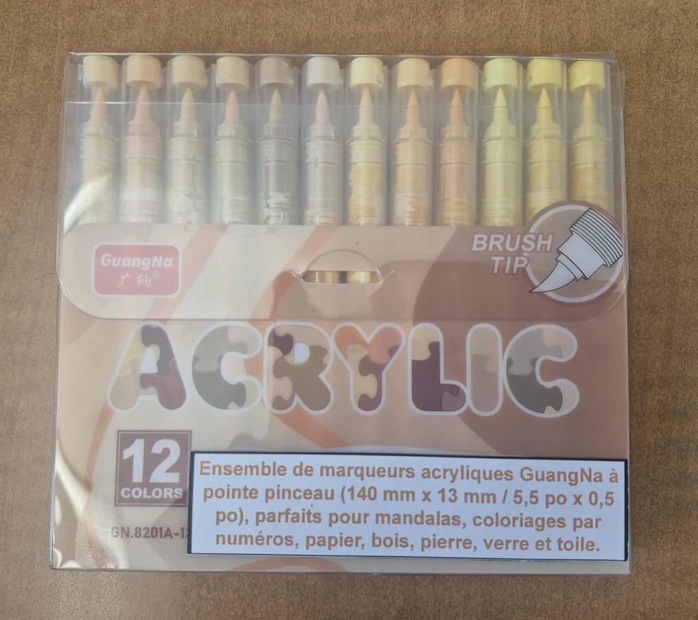 GUANGNA – ENSEMBLE DE 12 MARQUEURS ACRYLIQUES À POINTE PINCEAU - COULEURS PEAU est catégorisé dans BRICOLAGE / Dessin, peinture et coloriage en vente chez Galerie du Jouet, un magasin-boutique et un site web spécialisé.