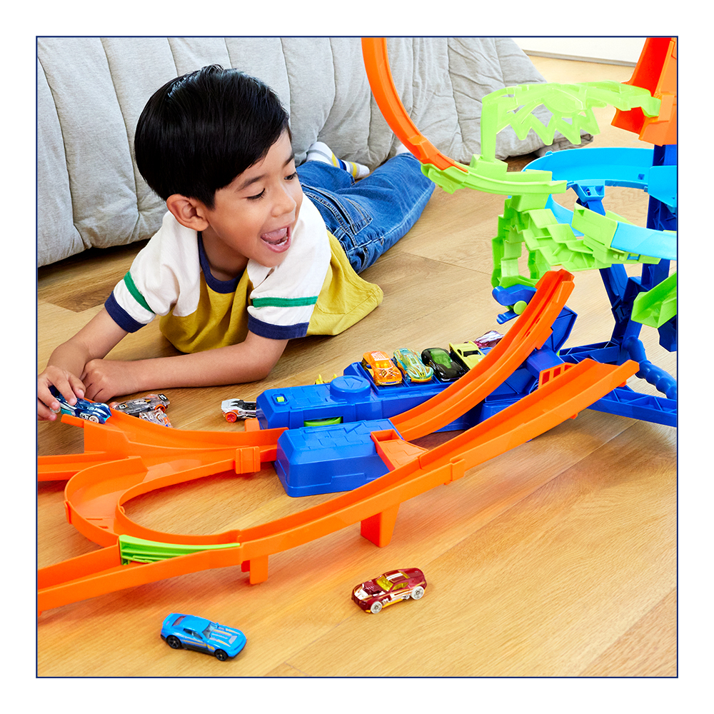- Le coffret Hot Wheels Piste Multi Crash combine les trois ingrédients dont raffolent les enfants : des cascades, de la vitesse et des crashs. Il inclut également un propulseur motorisé et une voiture Hot Wheels !