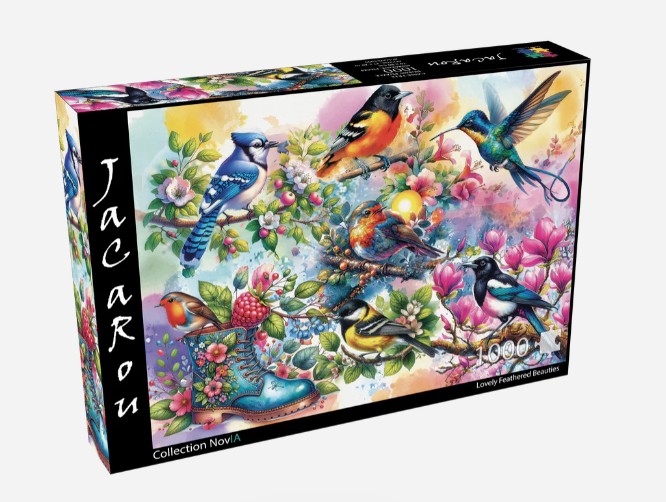 Laissez-vous émerveiller par l’éclat et la poésie de ce casse-tête de 1000 pièces, intitulé Lovely Feathered Beauties (Beautés à plumes), issu de la Collection Nova de Jacarou. Cette œuvre vibrante et détaillée est un véritable hommage à la nature et à la diversité des oiseaux colorés.Un spectacle de couleurs et de grâce