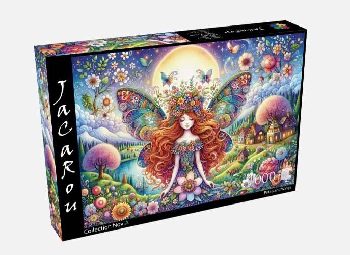 Entrez dans un monde féerique aux mille couleurs avec ce magnifique casse-tête de 1000 pièces intitulé Petals and Wings (Pétales et Ailes) de la Collection Nova de Jacarou. Une scène florale enchantée où nature, magie et beauté se rencontrent dans une explosion visuelle éclatante.🧚♀️🌸 Une fée au cœur d’un jardin magique
