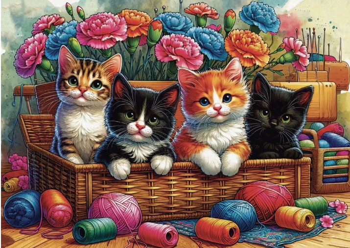 Offrez-vous un moment de détente tout en douceur avec ce superbe casse-tête de 1000 pièces de la Collection Nova signé Jacarou. Intitulé QUATUOR DE CHATONS DANS UN PANIER, ce casse-tête présente une scène attendrissante mettant en vedette quatre adorables chatons installés dans un panier tressé, entourés de pelotes de laine colorées et de magnifiques fleurs en arrière-plan.Les chatons aux pelages variés (tigré, noir, roux et blanc) sont représentés avec un réalisme charmant. Le décor floral coloré ajoute une touche de chaleur et de gaieté à cette scène remplie de vie.