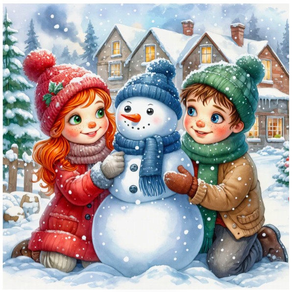 Revivez la magie de l’enfance et des plaisirs d’hiver avec ce magnifique kit de broderie diamant "Les Enfants en Hiver" de Jacarou. Ce tableau attendrissant met en scène deux enfants en habit d’hiver, construisant un bonhomme de neige joyeux dans un décor enneigé et festif.