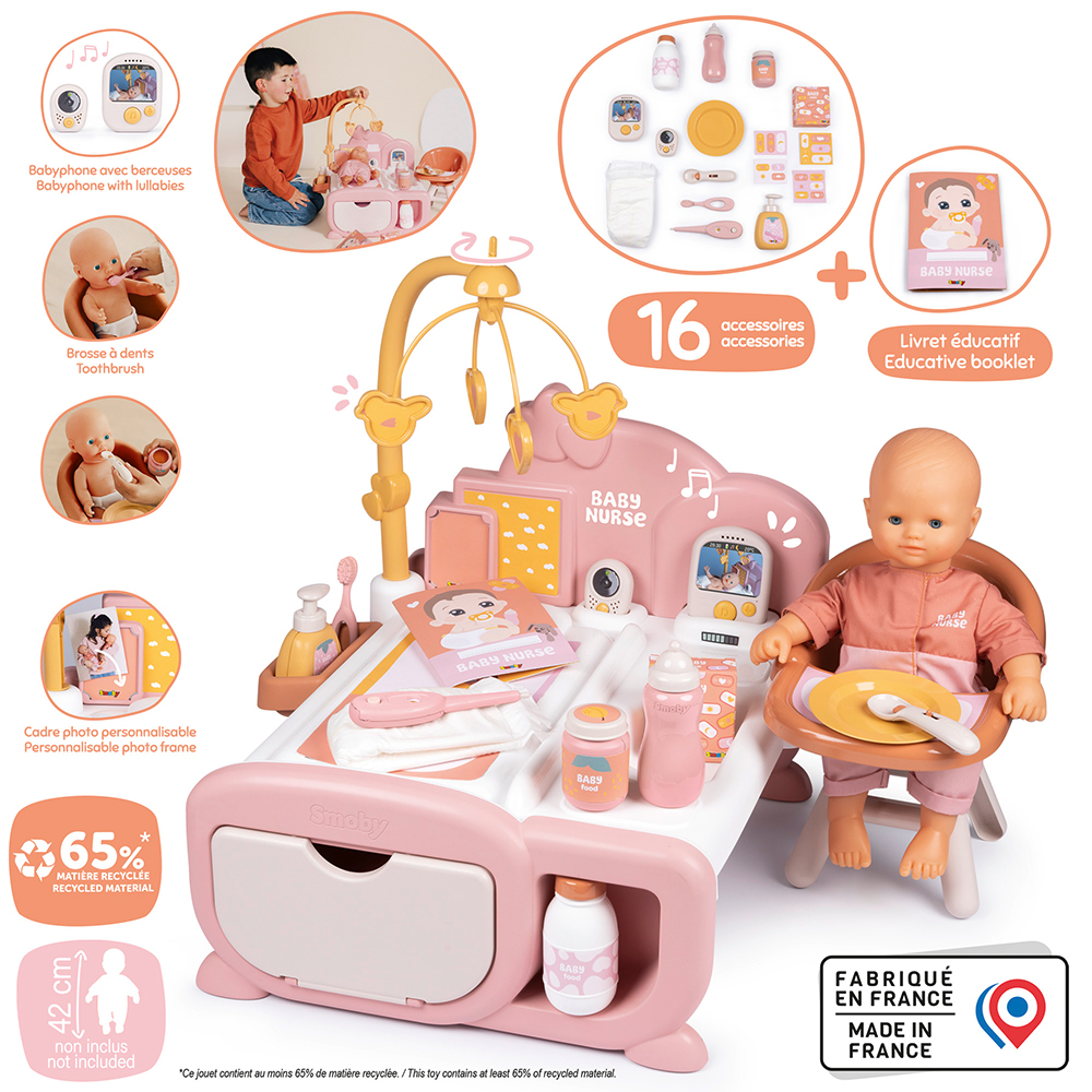 SmobyPrends soin de ton bébé dans cette pouponnière, soigne-le grâce aux nombreux accessoires et au livret éducatif !