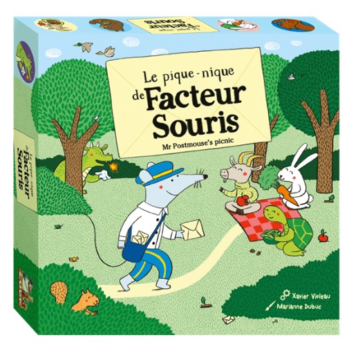 Dans l'univers mignon de Marianne Dubuc, aidez Facteur Souris à parcourir la forêt à la recherche de ses amis pour les inviter à un pique-nique.À tour de rôle, piochez une tuile dans le couvercle de la boîte pour tracer un chemin dans la forêt, ou pour faire avancer Facteur Souris. Mais la pluie peut vous ralentir avant que la nuit ne tombe et que l'aventure ne prenne fin. Pour augmenter la difficulté, vous pouvez ajouter la variante du dragon à la poursuite de son ami Facteur Souris !