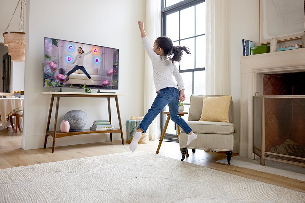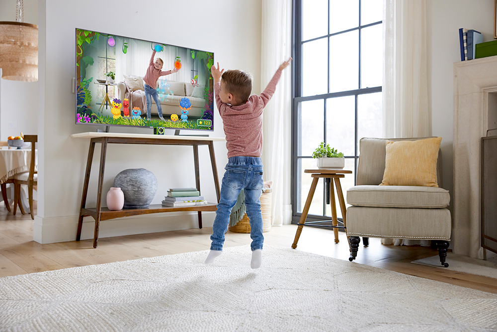 - Sans manette : la console capte les mouvements de l’enfant qui se voit à l’écran.