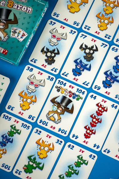 Par les auteurs connus: Michael Kiesling et Wolfgang KramerLe Baron - Un jeu 6 qui Prend qui se déroule de manière similaire au 6 qui Prend : les joueurs tentent d'éviter de prendre des cartes afin de maintenir un score bas.