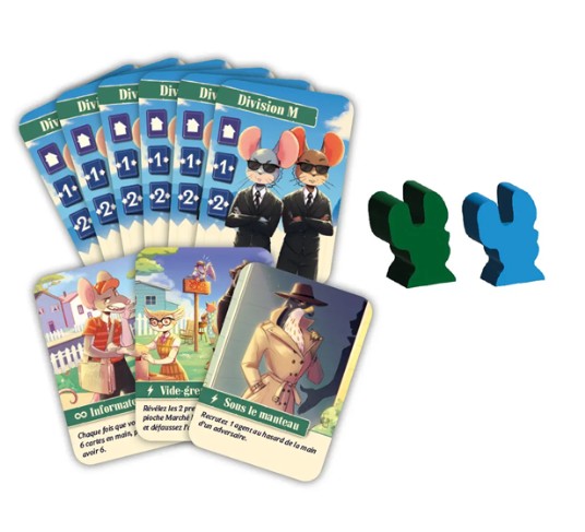 La première extension pour Agent Avenue ! Découvrez la Division M qui introduit de nouveux agents pour de nouvelles conditions de victoire, et 15 nouvelles cartes Marché NoirAgent Avenue – Division M est une extension passionnante, qui introduit un tout nouveau type d'agent : les souris de la Division M. Ces agents rusés créent une zone dangereuse autour de votre espace de jeu, ajoutant ainsi une nouvelle dimension stratégique, du suspense et du piquant à chaque partie d'Agent Avenue.
