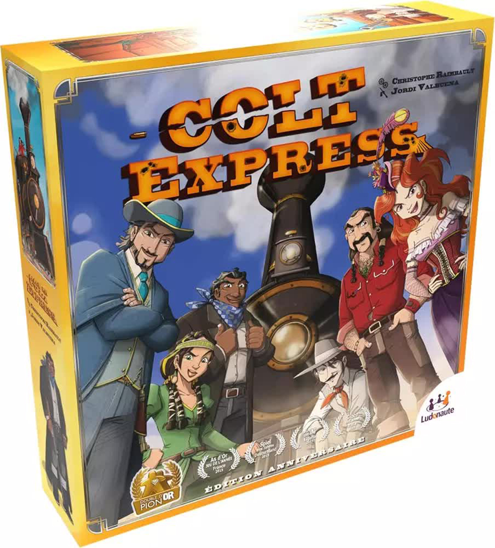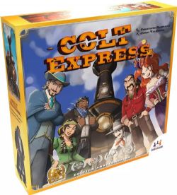 À la fin du XIX ème siècle, dans l’Ouest américain, les trains sont des cibles convoitées. Hors-la-loi et mercenaires cherchent à dérober les richesses des passagers et les cagnottes fédérales du fameux Colt Express. De célèbres bandits comme Jesse James ou Butch Cassidy construisent leur réputation lors des attaques des trains. Programmez les déplacement de votre bandit dans le train pour dérober un maximum de trésors. N’hésitez pas à cogner ou à tirer sur les bandits adverses, mais garde au Marshal!Le principe du jeu – Colt Express est un jeu de programmation d’actions, dans un esprit proche de celui de River Dragons (ce qui est un sacré compliment si vous connaissez notre amour pour ce jeu).