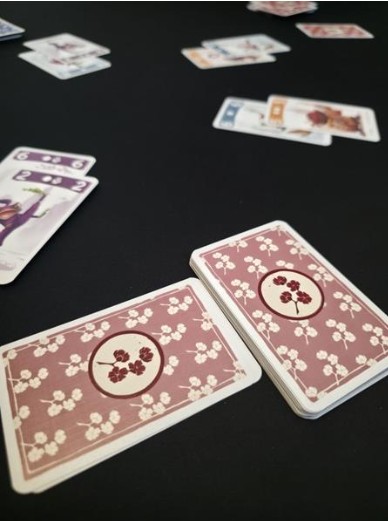 Chaque joueur dispose d'un jeu de 24 cartes numérotées de 1 à 8 et déclinées en trois couleurs. Vous devez jouer ces cartes judicieusement au cours des trois manches, car à chaque tour, le joueur qui joue la carte la plus forte d'une couleur reçoit un nombre de points égal au numéro de la manche. Les cartes jouées sont retirées du jeu, tandis que les cartes non jouées sont remises dans votre jeu pour être utilisées lors des manches suivantes.