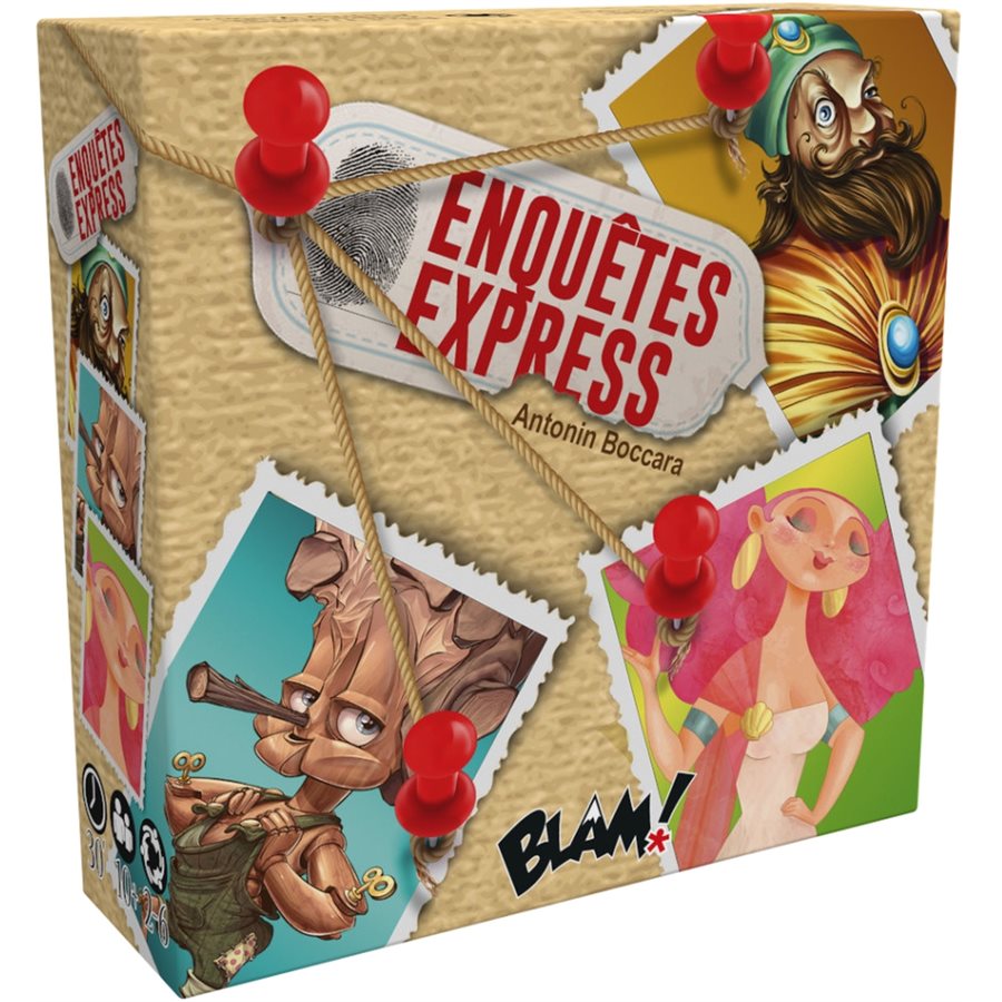 Enquêtes Express est un jeu d'investigation coopératif à la fois accessible, rapide et fun ! Lors d'une enquête, chaque joueur n’est autorisé à consulter qu’une partie des indices. C’est donc uniquement en partageant et en recoupant toutes leurs infos que les joueurs peuvent ensemble démêler l’intrigue.3 enquêtes vous attendent, dans des univers totalement différents : le cirque, la mythologie et les contes de fée!