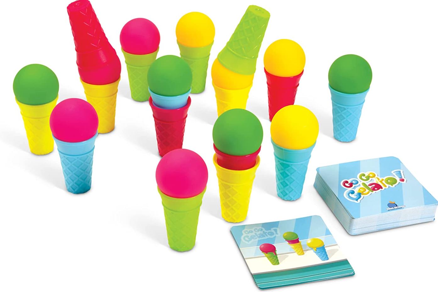 Chaque joueur dispose de 4 cornets de glace, et de 3 boules. Au signal, on retourne une « carte objectif » qui indique la composition à réaliser, en transvasant les boules d’un cornet à l’autre, sans toucher les boules avec les doigts et sans les faire tomber… Le premier qui a réalisé l’objectif crie « Go Go Gelato ! ».