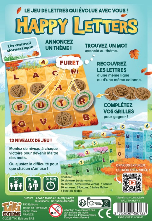 JEU HAPPY LETTERS est catégorisé dans JEUX DE SOCIÉTÉ / Adultes (général) / Classique (Jeux de lettres, poche) / abstrait en vente chez Galerie du Jouet, un magasin-boutique et un site web spécialisé.