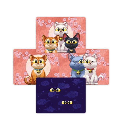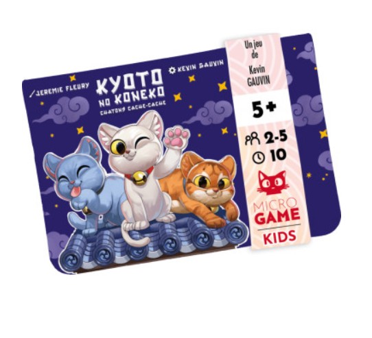 Kyoto No Koneko : Chatons Cache-Cache (Koneko = Chaton) est un Microgame pour les plus jeunes et toute la famille.Les joueurs vont faire face à un carré de 4x4 cartes dont ils ne voient que des paires d'yeux sensées leur indiquer le nombre de félins qu'ils découvriront s'ils décident de les retourner. À son tour, un joueur révèle une Mission (des cartes en forme de têtes de chat) qui lui indique le nombre exact de chatons qu'il devra révéler.