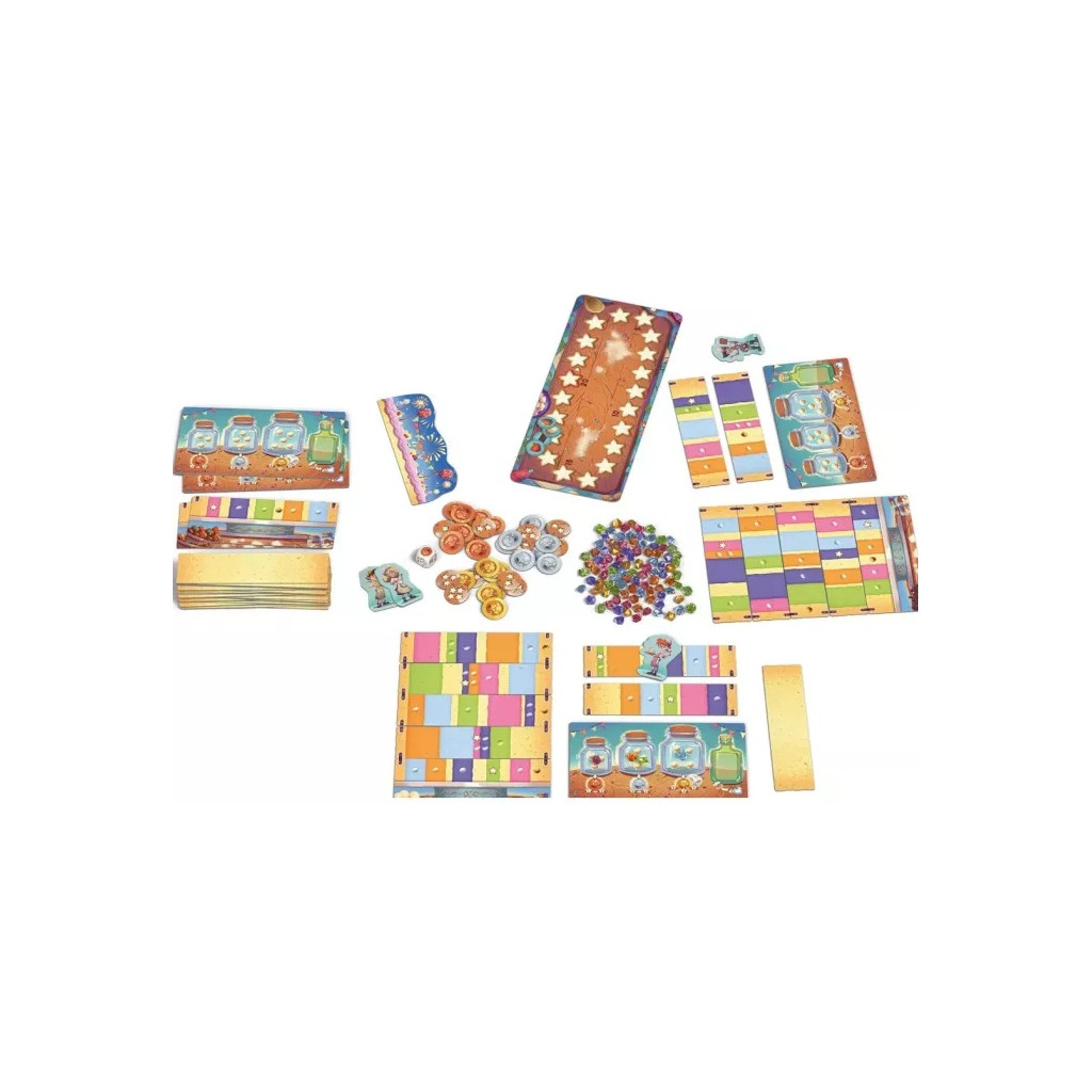 But du jeu: Préparez-vous à préparer le gâteau le plus époustouflant ! Placez judicieusement les tuiles pour gagner des morceaux de sucre et les échanger contre de précieux points de victoire.Un peu de sucre, une pincée de cannelle et un bon coup d'œil – voilà la recette gagnante pour exceller au concours de pâtisserie ! Façonnez votre gâteau étage après étage. Choisissez soigneusement les tuiles colorées qui composeront votre gâteau. Placez judicieusement les tuiles pour gagner des morceaux de sucre et les échanger contre de précieux points de victoire. Attention, car la pression monte à chaque manche ! Alors, qui parviendra à se démarquer de ses concurrents en réalisant le meilleur gâteau ?