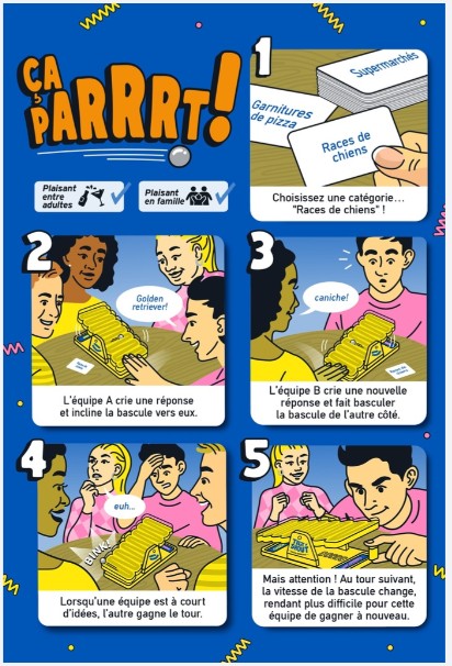 - VOUS AIMEZ AVOIR LE DERNIER MOT? Un jeu où deux équipes s'affrontent sur une catégorie, chronométré par une bascule à bille.