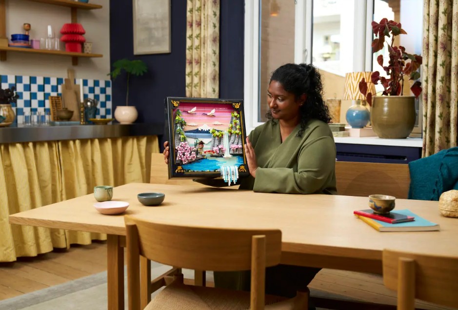 - CASCADE 3D RÉGLABLE – L’ensemble LEGO® Art comprend une cascade qui déborde du cadre. Ainsi, lorsqu’il est accroché au mur, l’eau coule directement, et lorsqu’il est posé à plat, la cascade peut être réglée pour se déverser sur une surface plane