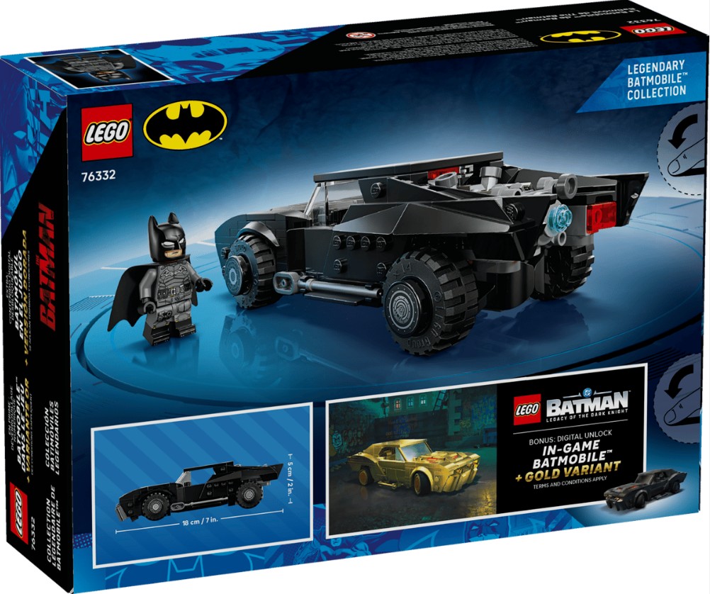 Fonction de déverrouillage numérique en prime : Échangez La Batmobile de Batman et une variante dorée de la Batmobile dans le jeu vidéo LEGO Batman - Legacy of the Dark Knight™. Balayez le code QR figurant sur la couverture du livret des instructions de construction et suivez les étapes indiquées.