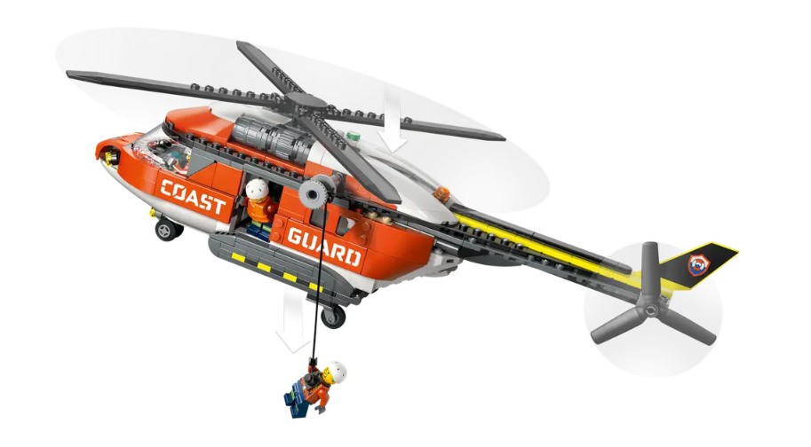 - FONCTIONS RÉALISTES POUR UN JEU IMAGINATIF – L’hélicoptère est équipé de portes coulissantes, de rotors pivotants et d’un treuil fonctionnel, ainsi que d’une capsule de sauvetage qui s’ouvre pour permettre l’accès à son intérieur détaillé