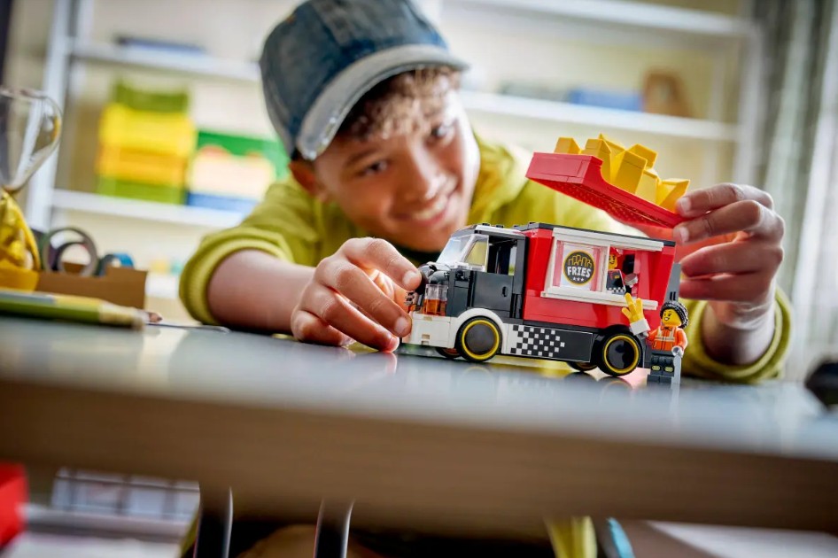 - QUE CONTIENT LA BOÎTE? – Comprend tout ce dont les enfants ont besoin pour construire l'ensemble LEGO® City Le camion de frites, ainsi que des figurines de vendeur et de client, et des accessoires