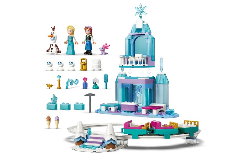 - DIMENSIONS – Cet ensemble de construction LEGO® ǀ Disney de 216 pièces comprend un château de glace à 2 niveaux avec une piste de traîneau circulaire qui mesure plus de 21 cm de haut, 28 cm de large et 27 cm de profondeur