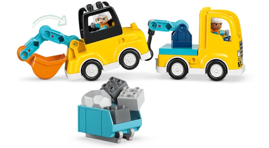 - 1 ENSEMBLE, 6 VÉHICULES – Les briques de cet ensemble LEGO® DUPLO® pour tout-petits s’assemblent pour créer 2 dépanneuses avec différents crochets, un chargeur, un élévateur à ciseaux, un camion à benne ou une excavatrice avec un bras flexible