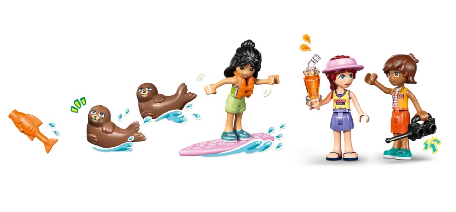 - 3 PERSONNAGES LEGO® FRIENDS – L’ensembleLEGO® Friends La maison sur la plage et les phoques (42699) comprend les minipoupées de Leo, Liann et Paisley ainsi que 2 figurines d’animaux pour inspirer le jeu d’imagination