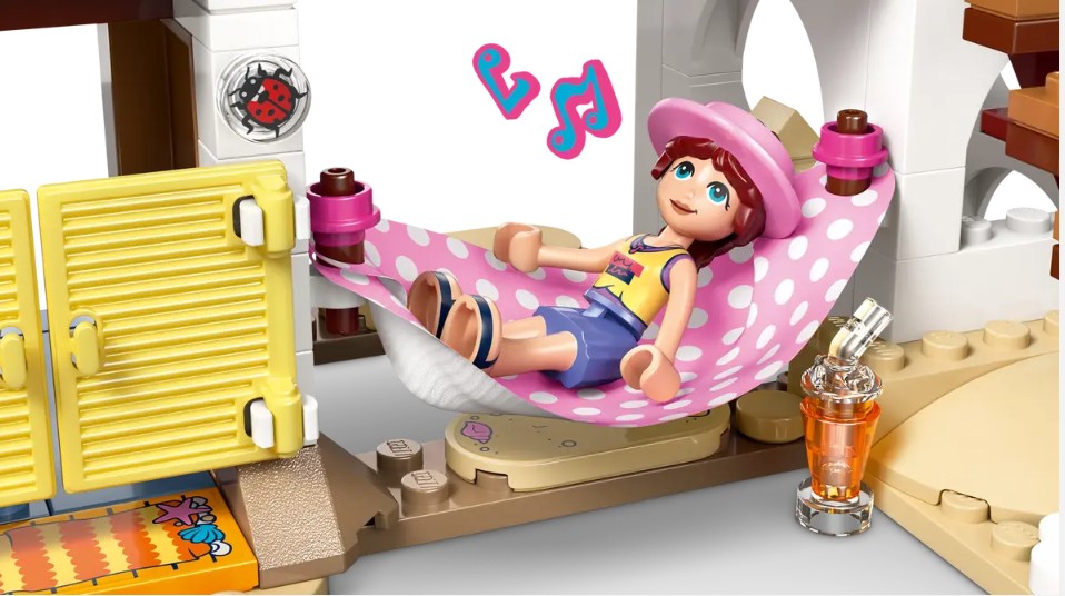 - BEAUCOUP D’ACCESSOIRES – Cet ensemble de construction de maison sur la plage comprend une machine à smoothie, 3 lits, une table et des sièges, des boissons, une douche extérieure, du sable avec des trésors cachés, un kayak, un hamac, une planche de surf et plus encore