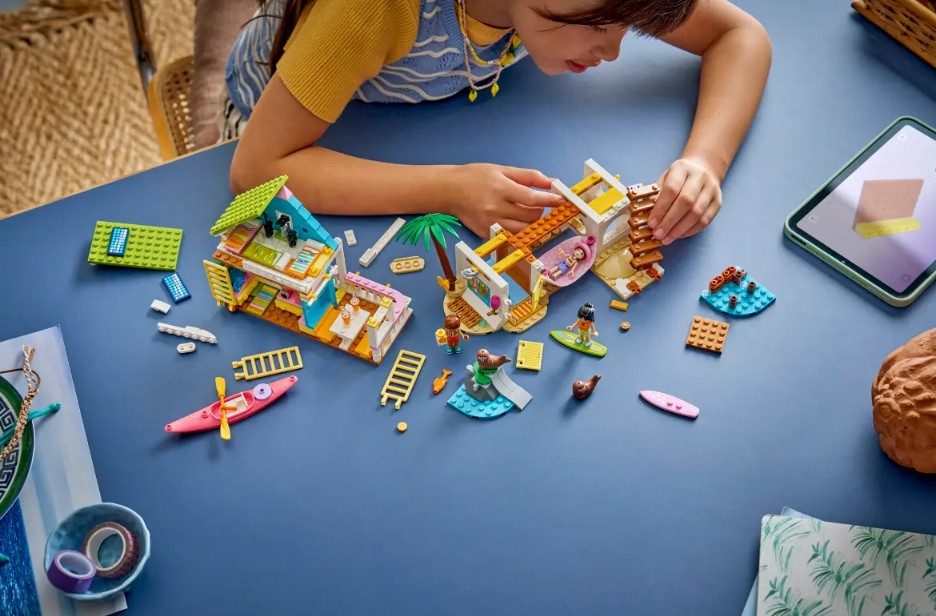 Les filles et les garçons de 7 ans et plus peuvent créer des histoires de vacances avec cet ensemble de maison de jeu amusante pour les enfants. L’ensemble de construction LEGO® Friends La maison sur la plage et les phoques (42699) présente une maison sur la plage détaillée, remplie de petits éléments chaleureux. Il y a beaucoup de choses pour stimuler le jeu imaginatif, notamment une machine à faire des smoothies dans la cuisine, une zone de couchage avec trois lits et un joli porche avec une terrasse et des sièges. Le plaisir se poursuit à l’extérieur avec une zone sablonneuse où les phoques aiment se détendre. Il y a même des trésors enfouis à trouver! Cet ensemble détaillé favorise le jeu libre avec 3 minipoupées et 2 phoques. Les accessoires amusants comprennent une planche de surf, un kayak, un hamac, un gilet de sauvetage, des émetteurs-récepteurs, des jumelles, de la crème solaire, un appareil photo, des en-cas et bien plus encore. Cet ensemble constitue un excellent cadeau d’anniversaire pour les filles et les garçons qui aiment utiliser leur imagination lorsqu’ils s’amusent avec des jouets. Avec l’application LEGO Builder, les enfants peuvent réaliser une construction intuitive, agrandir et faire pivoter les modèles grâce aux instructions de construction en 3D, enregistrer les ensembles et suivre leur progression. L’ensemble contient 400 pièces.- ENSEMBLE DE CONSTRUCTION LA MAISON SUR LA PLAGE – Encouragez les enfants de 7 ans et plus à raconter des histoires créatives grâce à cet ensemble La maison sur la plage et les phoques pour filles et garçons, qui comprend 3 minipoupées, 2 phoqueset des accessoires