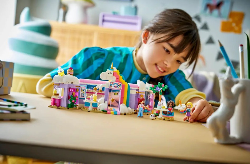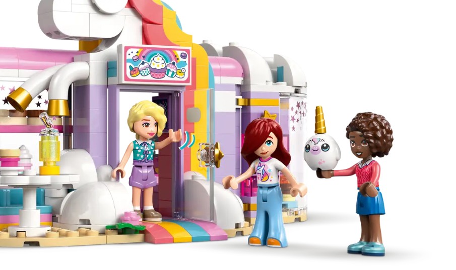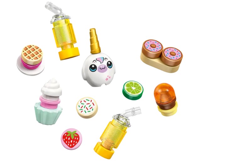 - ACCESSOIRES DE CAFÉ DÉTAILLÉS – Donnez vie au jeu avec des beignes, des gaufres, des biscuits, des petits gâteaux, des gâteaux, un bar à jus de fruits et à laits frappés, une zone de sièges, une caisse enregistreuse et une peluche de licorne LEGO®