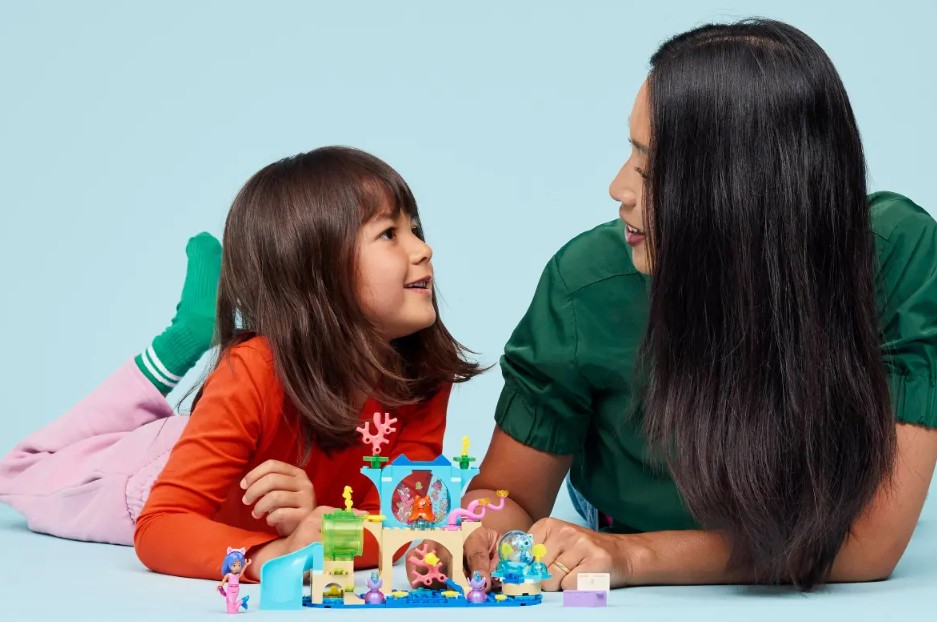 • Jouet de construction et de jeu pour enfants – Il y a beaucoup à découvrir : coquillages, plantes, animaux marins, un toboggan, une bulle géante dans laquelle les personnages peuvent « flotter » et un corail qui bouge et révèle un coffre au trésor