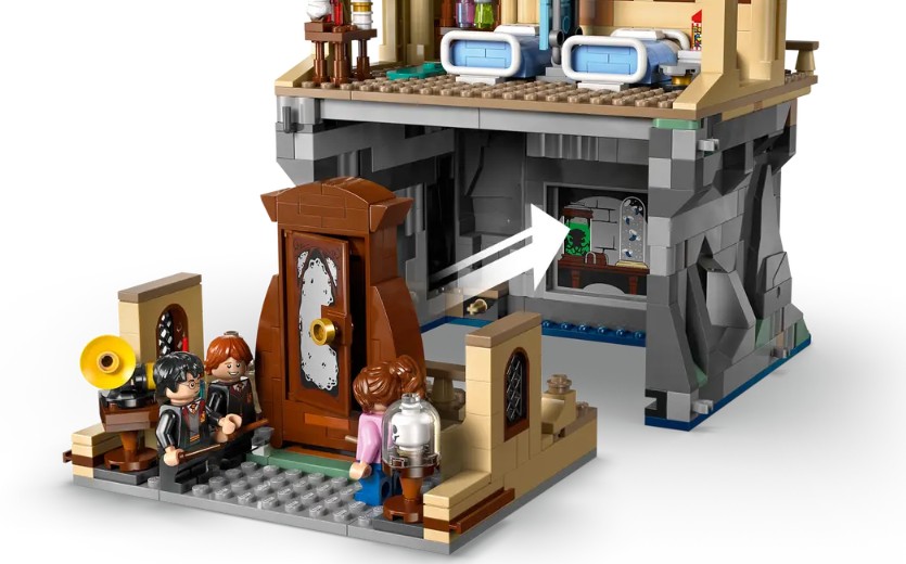 - CONSTRUCTION À 3 NIVEAUX – Explorez la salle de classe amovible du cours de défense contre les forces du Mal au niveau inférieur, l’infirmerie et la salle commune de Serdaigle