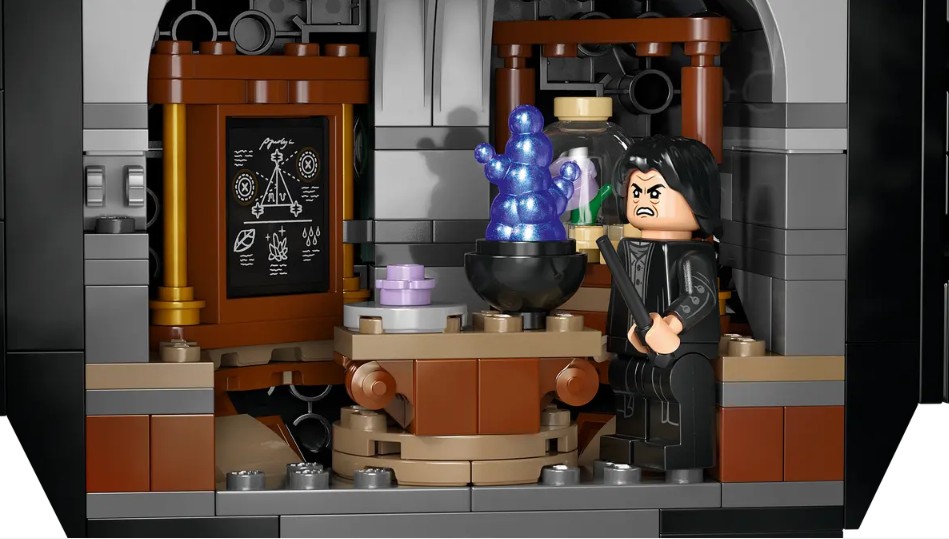 - CLASSE SECRÈTE – Déplacez le bâton et révélez la salle de classe avec des tables amovibles pour jouer facilement, un tableau noir, des bouteilles de potion et des ingrédients LEGO® pour les potions Tue-loup, polynectar et d’amour