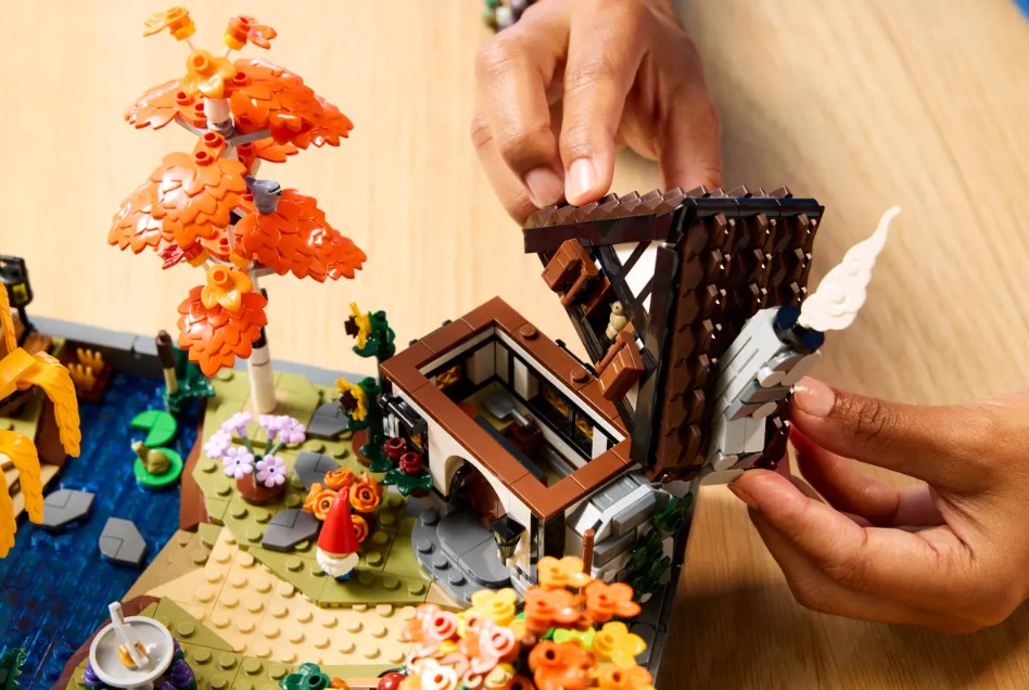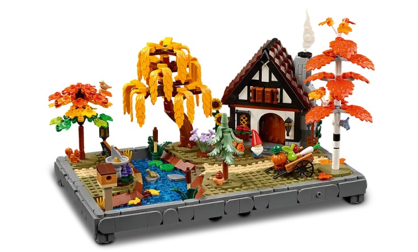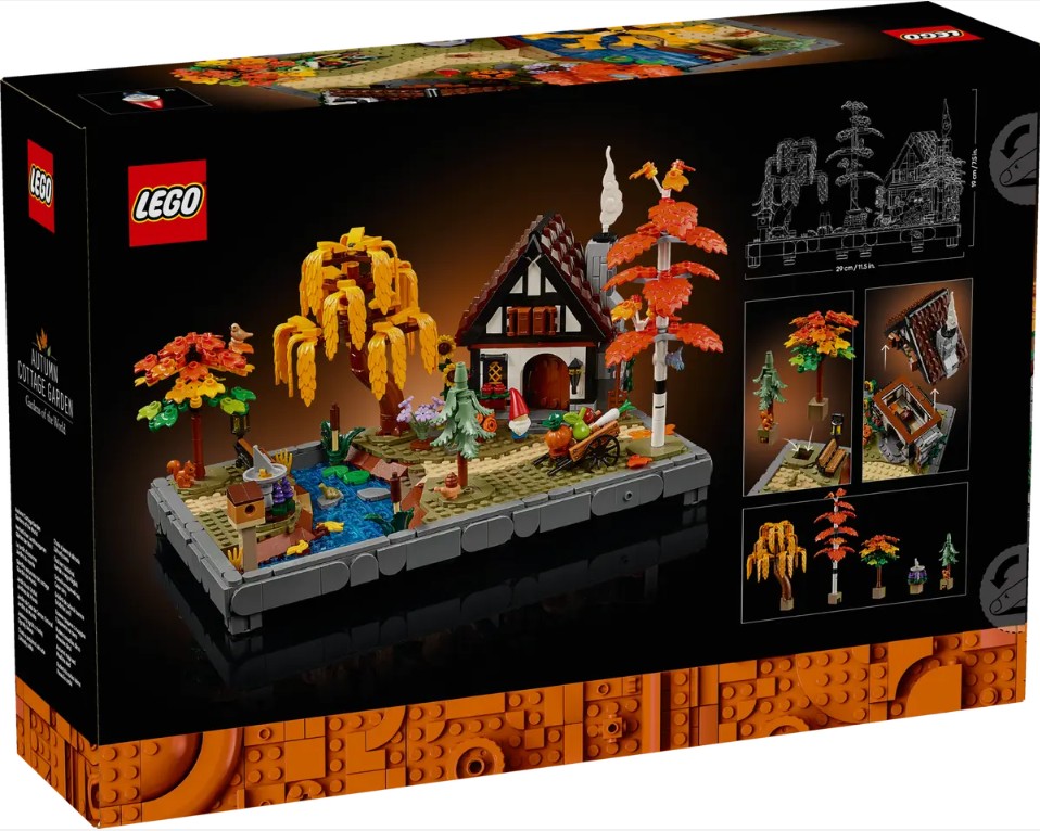 - DIMENSIONS – La maison de cet ensemble LEGO® Icons Le jardin du chalet d’automne de 1 102 pièces mesure plus de 19 cm de haut, 29 cm de large et 18 cm de profondeur